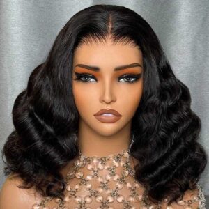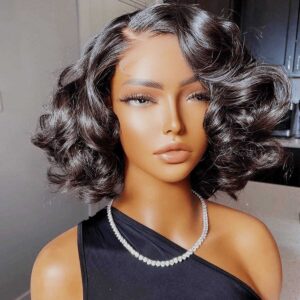 EveshairportCafe Glueless 5×5 Lace Closure Bob Loose Curly Wig