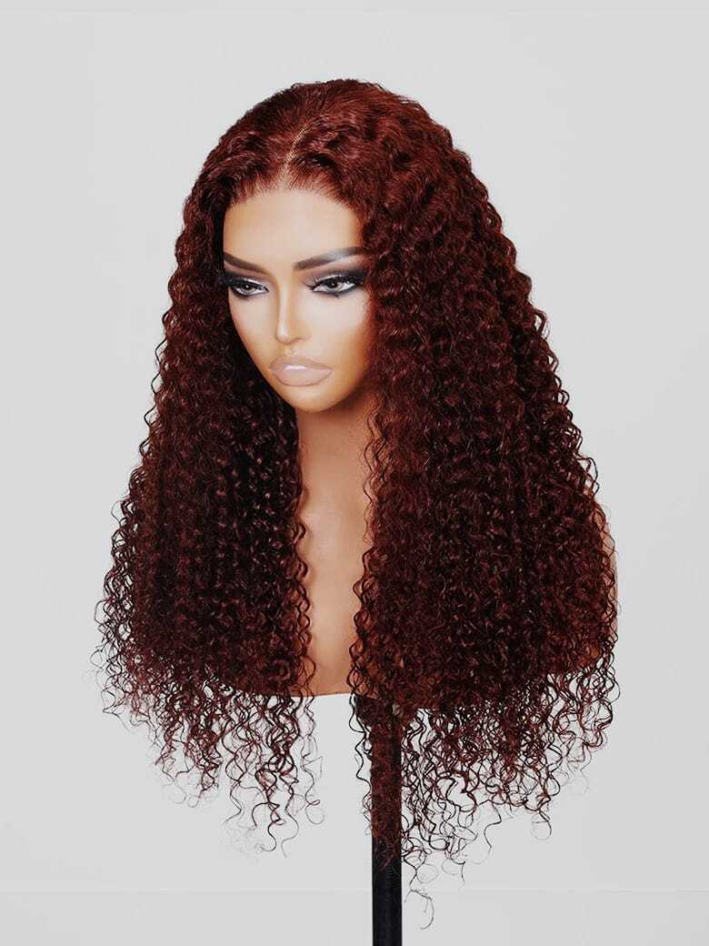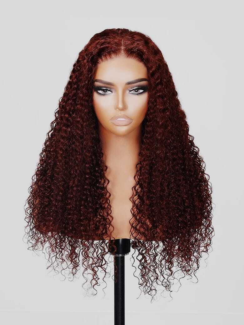 Red Brown Curly Wave Glueless Air Wig
